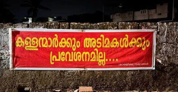 കണ്ണൂർ ∙ പയ്യന്നൂരിൽ ‘കള്ളൻമാർക്കും അടിമകൾക്കും പ്രവേശനമില്ല’ എന്ന് ഫ്ലക്സ് ബോർഡ്. കാരയിലെ സഖാക്കൾ എന്ന പേരിലാണ് ഫ്ലക്സ് പ്രത്യക്ഷപ്പെട്ടത്. കാരയിലെ സഖാക്കൾ എന്ന പേരിലുളള സമൂഹമാധ്യമ അക്കൗണ്ടുകളിൽ വി. കുഞ്ഞിക്കൃഷ്ണനെ അനുകൂലിച്ചുള്ള പോസ്റ്ററുകളും പങ്കുവച്ചിരുന്നു. ഇതിനു പിന്നാലെയാണ് ഫ്ലക്സ് ബോർഡ് പ്രത്യക്ഷപ്പെട്ടത്.