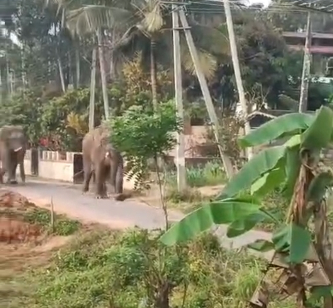 പനമരം: ഒരു ഇടവേളയക്കു ശേഷം പനമരം എരനെല്ലൂരിൽ വീണ്ടും കാട്ടാനകൾ എത്തി. വാടോച്ചാൽ, മേച്ചേരി ഭാഗത്ത് 2 ആനകളാണ് ഇന്നു പുലർച്ചെയോടെ ജനവാസ മേഖലയിലേക്ക് എത്തിയത്. മണിക്കൂറുകൾ നീണ്ട ശ്രമത്തിനൊടുവിൽ വനം വകുപ്പ് അധികൃതർ ആനകളെ പ്രദേശത്ത് നിന്നു തുരത്തി. എരനെല്ലൂർ ഭാഗത്ത് ആദ്യമെത്തിയ കാട്ടാനകളെ മാനന്തവാടി റേഞ്ച് ഓഫിസിൽ നിന്ന് എത്തിയ വനം വകുപ്പ് ജീവനക്കാർ തുരത്താൻ ശ്രമിച്ചതോടെ ആനകൾ മേച്ചേരിയിൽ എത്തുകയായിരുന്നു. എല്ലാവർഷവും ഈ ഭാഗത്തേക്ക് ആനകൾ എത്തുന്നതിനാൽ ഭീതിയിലാണ് തങ്ങൾ ഉള്ളതെന്ന് പ്രദേശവാസികൾ പറയുന്നു.പാതിരി സൗത്ത് സെക്ഷൻവനമേഖലയിൽ നിന്നാണ് രണ്ട് കൊമ്പന്മാർ പനമരം ചെറുപുഴ കടന്ന് മേച്ചേരി ഭാഗത്ത് എത്തിയത്. വനം വകുപ്പ് ജീവനക്കാരും ആർ ആർ ടി സംഘം ഉൾപ്പെടെയുള്ളവരും ചേർന്നാണ് ആനകളെ തുരത്തിയത്.