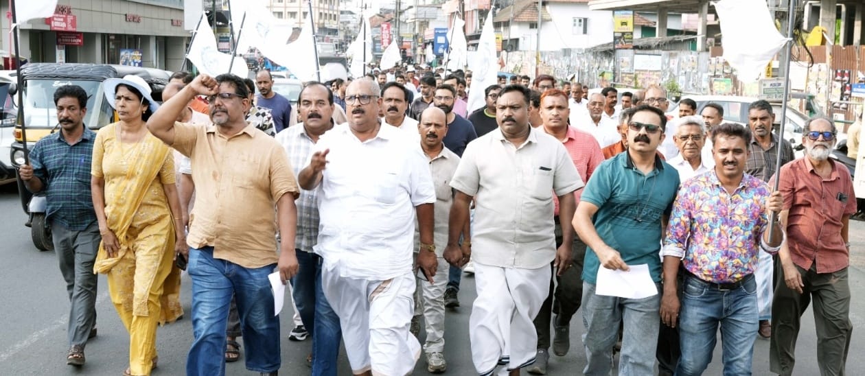 ടൗണുകൾ കേന്ദ്രീകരിച്ച് വ്യാപാരസ്ഥാപനങ്ങൾ ഉള്ള മെയിൻ കവലകളിൽ ഗുഡ്സ് വാഹനങ്ങളിലായി വിവിധ തരത്തിലുള്ള കച്ചവടങ്ങൾ കൂടി കൂടി വരികയാണ്.കഴിഞ്ഞദിവസം കൽപ്പറ്റ ടൗണിൽ ഇത്തരത്തിലുള്ള കച്ചവടം നടത്തുന്നതിന് അനുമതിയില്ലായെന്ന് ഭാരവാഹികൾ സൗമ്യമായി പറഞ്ഞപ്പോൾ യൂണിറ്റ് പ്രസിഡണ്ട് ഇ ഹൈദ്രുവിനേയും യൂത്ത് വിംഗ് പ്രസിഡണ്ട് ഷൈജലിനേയും എക്സിക്യൂട്ടീവ് അംഗം ബാവ എന്നിവരെ ധിക്കാരപരമായി പെരുമാറുകയും ക്രൂരമായി കയ്യേറ്റം ചെയ്യുകയും ചെയ്തതിൽ പ്രതിഷേധിച്ച് കേരളാ വ്യാപാരി വ്യവസായി ഏകോപന സമിതി ജില്ലാ കമ്മിറ്റി ആഹ്വാനം ചെയ്ത പ്രതിഷേധ പ്രകടനം കൽപ്പറ്റയിൽ കനറ ബാങ്ക് പരിസരത്ത് നിന്ന് ആരംഭിച്ച് പുതിയസ്റ്റാൻറ് പരിസരത്ത് സമാപിച്ചു….. പ്രതിഷേധയോഗം ജില്ലാ പ്രസിഡണ്ട് ജോജിൻ ടി ജോയ് ഉദ്ഘാടനം ചെയ്തു….. യൂണിറ്റ് പ്രസിഡണ്ട് അധ്യഷത വഹിച്ചു…… ജനറൽസെക്രട്ടറി രഞ്ജിത് കെ , ട്രഷറർ കെകെ ജോൺസൺ, ജില്ലാ സെക്രട്ടറി അജിത് PV, ഷാജി കല്ലടാസ്, ഹാരിസ് ടി, അബ്ദുറഹിമാൻ തനിമ , ജോൺ മാതാ,ഗോൾഡ് അസോസിയേഷൻ സെക്രട്ടറി സിദ്ധീഖ് കെ എച്ച്, കെഎച്ച്ആർഎ കൽപ്പറ്റ യൂണിറ്റ് പ്രസിഡൻ്റ് അബ്ദുറഹിമാൻ പ്രാണിയത്ത് വനിതാ വിംഗ് പ്രസിഡണ്ട് സൗദ, വനിതാ വിങ്ങ് ജില്ലാ ട്രഷറർ അമ്പിളി, എന്നിവർ പ്രസംഗിച്ചു, പ്രകടനത്തിന് നേതൃത്വം നൽകിയവർ സതീശ് ശ്രീ പുഷ്പ, അബ്ദുൽ ഗഫൂർ പിപി, ഷംസു, സരോജിനി, സുപ്രിയ, സി ടി ഹംസ, പ്രമോദ് ഗ്ലാഡ്സൺ,
