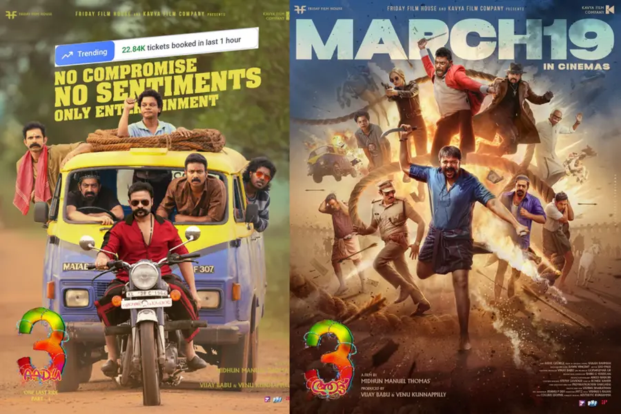ബ്ലോക്ക്ബസ്റ്റർ വിജയത്തിലേക്ക് കുതിച്ച് മിഥുൻ മാനുവൽ തോമസ് രചിച്ചു സംവിധാനം ചെയ്ത ‘ആട് 3 പാർട്ട് 1; വൺ ലാസ്റ്റ് റൈഡ്’. ആദ്യ ഷോ കഴിഞ്ഞപ്പപ്പോൾ മുതൽ ഗംഭീര പ്രേക്ഷക പ്രതികരണം നേടിയ ചിത്രം ബുക്ക് മൈ ഷോയിലും തരംഗമായി മാറുകയാണ്. മണിക്കൂറിൽ 20,000-ത്തിന് മുകളിൽ ടിക്കറ്റുകൾ ബുക്ക് മൈ ഷോ വഴി വിറ്റു പോകുന്ന നാലാമത്തെ മലയാള ചിത്രം എന്ന നേട്ടമാണ് ആട് 3 സ്വന്തമാക്കിയത്. 23,000-ത്തോളം ടിക്കറ്റുകളാണ് ബുക്ക് മൈഷോയിലൂടെ ഈ ചിത്രത്തിന്റേതായി വിറ്റു പോയത്. എമ്പുരാൻ, തുടരും, ലോക എന്നീ ചിത്രങ്ങൾ മാത്രമാണ് ഇതിനു മുൻപ് ഈ നേട്ടം കൈവരിച്ച മലയാള ചിത്രങ്ങൾ.