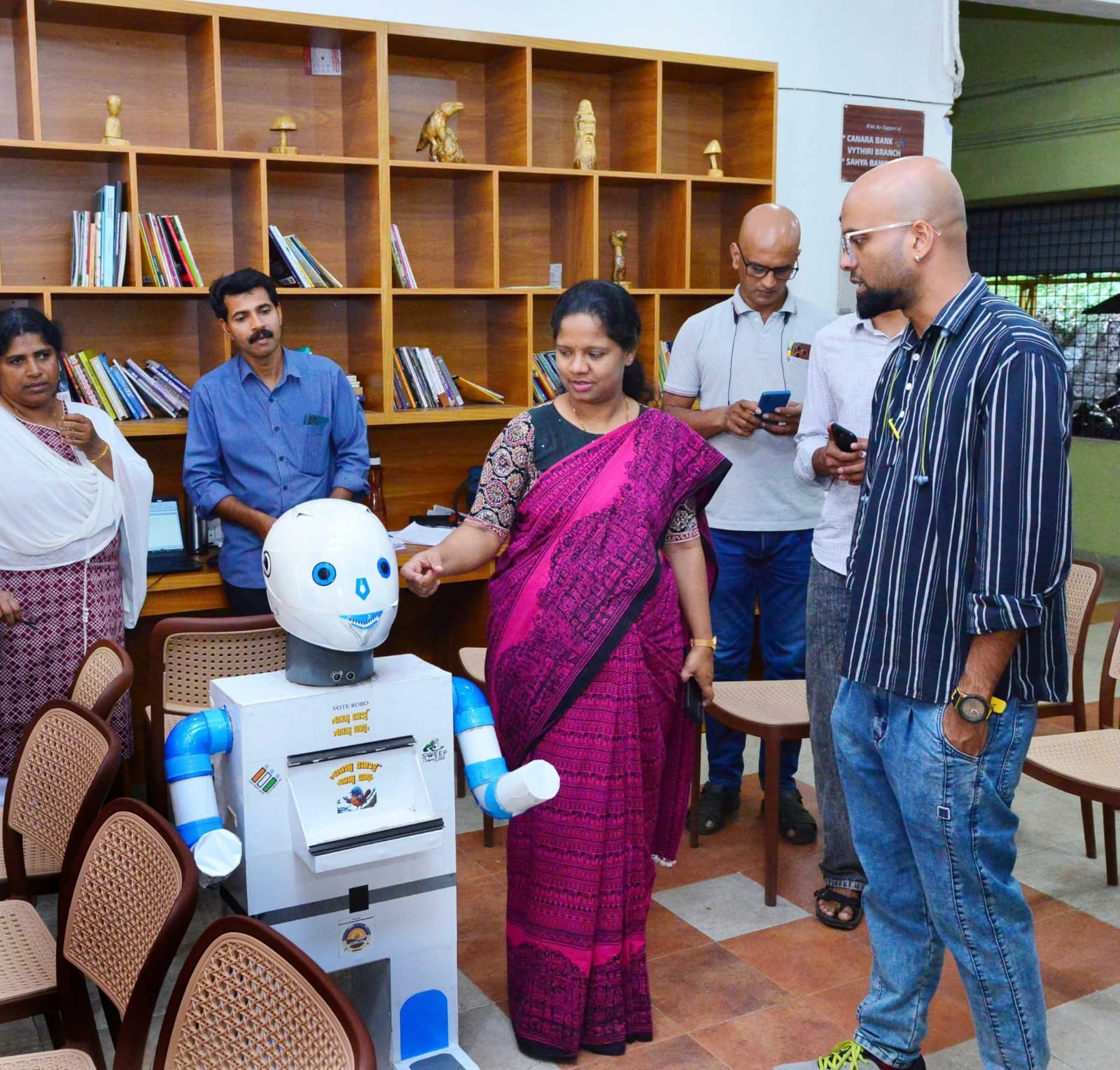 ഞാന് നിങ്ങളുടെ സ്വന്തം വോട്ട് റോബോ’….. എന്റെ വോട്ട്, എന്റെ ശബ്ദം എന്ന സന്ദേശവുമായി കളക്ടറേറ്റില് എത്തുന്ന പൊതുജനങ്ങളേയും ജീവനക്കാരെയും സ്വീകരിക്കുന്ന വോട്ട് റോബോ കൗതുകമാവുന്നു. നിയമസഭാ തെരഞ്ഞെടുപ്പ് ബോധവത്കരണ പ്രവര്ത്തനങ്ങള്ക്കായി ജില്ലാ സ്വീപ് ടീം കല്പറ്റ ഗവ.ഐ. ടി. ഐ യുടെ സഹകരണത്തോടെയാണ് വോട്ട് റോബോയെ രംഗത്തിറക്കിയത്. ജില്ലാ കളക്ടര് ഡി. ആര് മേഘശ്രീ വോട്ട് റോബോയുടെ ഉദ്ഘാടനം നിര്വഹിച്ചു. പൊതുജനങ്ങള്ക്ക് വോട്ടര് ബോധവത്കരണം നല്കുകയാണ് വോട്ട് റോബോയുടെ പ്രധാന ലക്ഷ്യം.മൈക്രോ കണ്ട്രോളറും സെന്സറും ഘടിപ്പിച്ച വോട്ട് റോബോ അടുത്തെത്തുന്ന ആളുകളുടെ സാന്നിധ്യം തിരിച്ചറിഞ്ഞാണ് വോട്ടവകാശത്തെക്കുറിച്ച് സംസാരിക്കുന്നത്. ഏപ്രില് ഒമ്പതിന് നടക്കുന്ന തെരഞ്ഞെടുപ്പിന് എല്ലാവരും വോട്ട് ചെയ്യണമെന്നും വോട്ടെടുപ്പില് പങ്കെടുക്കുക ചെറിയ കാര്യമല്ലെന്നും രാജ്യത്തിന്റെ സൃഷ്ടിയില് പങ്കാളികളാവുകയാണെന്നും വോട്ട് റോബോ ഓര്മ്മിപ്പിക്കുന്നു. സാങ്കേതികവിദ്യ എങ്ങനെ സാമൂഹിക മാറ്റത്തിനായി ഉപയോഗിക്കാം എന്നതിന്റെ ഉത്തമ ഉദാഹരണമാവുകയാണ് വോട്ട് റോബോ.നിയമസഭാ തെരഞ്ഞെടുപ്പിനായി റോബോട്ടിന് ശബ്ദ സംവിധാനം നല്കി നവീകരിച്ചത് കല്പ്പറ്റ ഐ ഐ ടി വിദ്യാര്ത്ഥികളും അധ്യാപകരുമാണ്.അസിസ്റ്റന്റ് കളക്ടര് പി.പി അര്ച്ചനയുടെ നേതൃത്വത്തിലുള്ള ജില്ലാ സ്വീപ് ടീം അംഗങ്ങള്ക്കൊപ്പം കല്പറ്റ ഗവ.ഐ. ടി. ഐ പ്രിന്സിപ്പള് എസ്. ശ്രീജ, ഇലക്ട്രോണിക്സ് വിഭാഗം അധ്യാപകനായ പി. ബിനീഷ്, കെ. എസ് രാഖി, ഇലക്ട്രോണിക്സ് വിഭാഗം വിദ്യാര്ത്ഥികള് എന്നിവരാണ് വോട്ട് റോബോ യാഥാര്ഥ്യമാക്കിയത്.