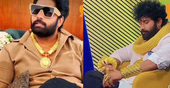 അതി സമ്പന്നരാണെന്ന് മറ്റുള്ളവരെ ബോധിപ്പിക്കുന്നത് ചിലർക്ക് ഒരു ത്രില്ലാണ്. സമ്പത്ത് പ്രദർശിപ്പിക്കാനുള്ള ഏറ്റവും മികച്ച മാർഗം സ്വർണവുമാണ്. ഈ സ്വർണഭ്രാന്തിന് സ്ത്രീ പുരുഷ വ്യത്യാസമില്ല. എന്നാൽ സ്വയം സമ്പന്നനാണെന്ന് മറ്റുള്ളവർക്ക് മുന്നിൽ മേനി നടിക്കാൻ സ്വർണാഭരണങ്ങളിൽ മുങ്ങി ഒടുവിൽ പിടിയിലായിരിക്കുകയാണ് ഹൈദരാബാദ് സ്വദേശിയായ സൂര്യ ഭായ്. കയ്യിലും കഴുത്തിലുമായി വമ്പൻ സ്വർണാഭരണങ്ങൾ ധരിച്ച് ജനങ്ങൾക്കിടയിൽ അതിസമ്പന്നൻ എന്ന പ്രതീതി ഉണ്ടാക്കുകയായിരുന്നു സൂര്യ.