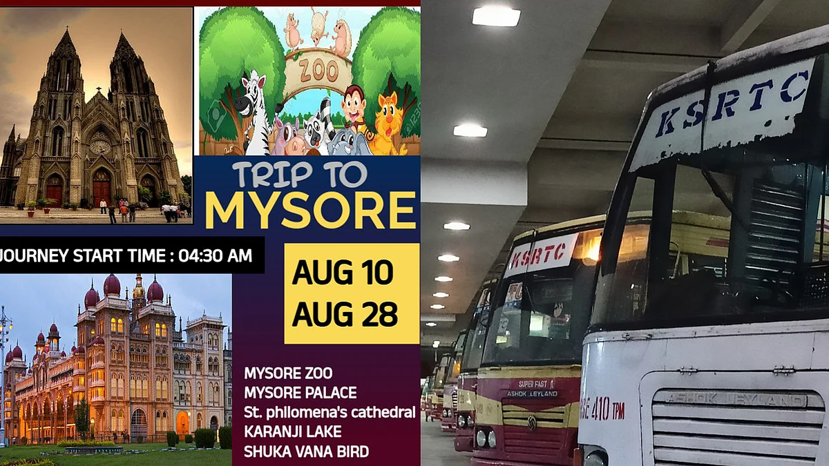 ഓഗസ്റ്റ് 10, 28 തീയതികളിലാണ് യാത്ര. പുലര്ച്ചെ 4.30ന് യാത്ര പുറപ്പെടും. മൈസൂര് മൃഗശാല, മൈസൂര് പാലസ്, കാരാഞ്ചി ലേക്ക്, സുഖ വന പക്ഷി സങ്കേതം തുടങ്ങിയ സ്ഥലങ്ങളാണ് സന്ദര്ശിക്കുക. ഫാസ്റ്റ് പാസഞ്ചര് ബസ് യാത്രയ്ക്ക് ഒരാള്ക്ക് 1080 രൂപയാണ് നിരക്ക് (ബസ് ചാര്ജ് മാത്രം). കൂടുതല് വിവരങ്ങള്ക്ക് 9946068832, 9544477954.