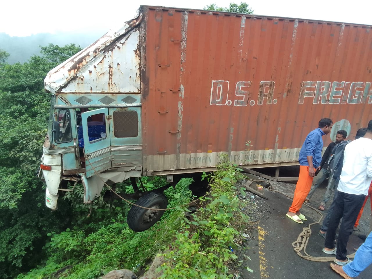 ചുരം ഒൻപതാം വളവിൽ നിയന്ത്രണം വിട്ട കണ്ടൈനർ ലോറി സംരക്ഷണ ഭിത്തി തകർത്തു കൊക്കയിലേക്ക് വീഴാനായ നിലയിൽ നിന്നു.ഒഴിവായത് വൻ ദുരന്തം.അൽപസമയം മുമ്പാണ് സംഭവം.