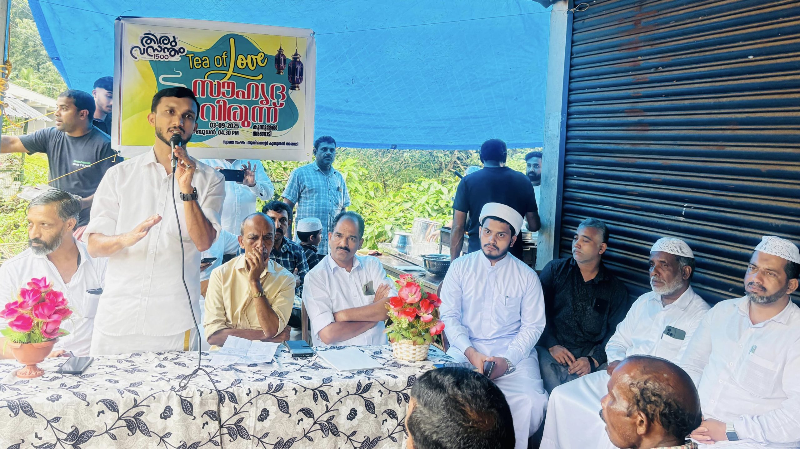 മാനന്തവാടി:കുന്നുമ്മലങ്ങാടി സുന്നി സെന്ററിന്റെ ആഭിമുഖ്യത്തിൽ സംഘടിപ്പിച്ച മീലാദ് @1500സൗഹൃദ വിരുന്ന് ‘ലൗവ് ഓഫ് ടീ’വയനാട് ജില്ലാപഞ്ചായത്ത് ക്ഷേമകാര്യ സ്റ്റാൻഡിങ് കമ്മിറ്റി ചെയർപേഴ്സൺ ജുനൈദ് കൈപ്പാണി ഉദ്ഘാടനം ചെയ്തു.മുഹമ്മദ് റാസി സഖാഫി അധ്യക്ഷത വഹിച്ചു.ശറഫുദ്ധീൻ ഹാജി, മോയിൻ സഖാഫി, ഇ. കെ ജയരാജൻ, വിനോദ് പാലിയാണ,എം രാധാകൃഷ്ണൻ, എം ഗംഗധരൻ, അബ്ദുറഹ്മാൻ മുസ്ലിയാർ, ഫാറൂഖ് ഖുതുബി, അമൻ അഹ്മദ് തുടങ്ങിയവർ പ്രസംഗിച്ചു.