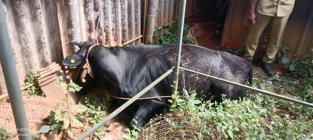പുതുശ്ശേരിക്കടവ് വെട്ടാശ്ശേരി രാജൻ എന്നയാളുടെ കറവയുള്ള പശുവാണ് ചത്തത്.ഇന്ന് രാവിലെ പത്തരയോടെയാണ് സംഭവം. കടയുടെ പിൻവശത്താണ് അപകടമുണ്ടായത്. കുന്നുമ്മലങ്ങാടി ക്ഷീര സംഘം ഭരണസമിതി അംഗങ്ങളും പോലീസും കെ.എസ്.ഇ.ബി. അധികൃതരും സ്ഥലത്തെത്തി.